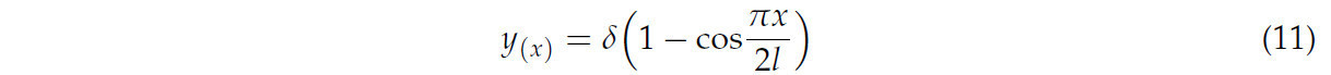 В формуле, y(x) — прогиб стебля; l — длина стебля; δ — горизонтальное перемещение на кончике стебля; x — положение сечения.