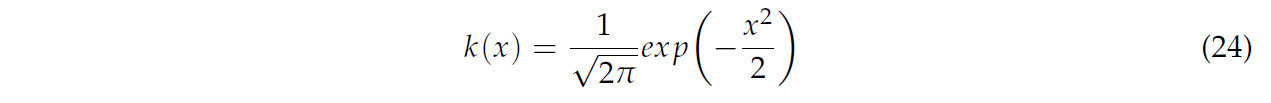 В уравнениях (23) и (24) f ( x ) — функция плотности случайной величины X , где X𝑖 отражает уровень координации взаимодействия сельского хозяйства и экологии в каждой провинции. x̲— средний уровень координации связи, N — общий размер выборки, h — ширина полосы пропускания, а K (·) — функция ядра. K( 𝑥 ) является стандартной обычной функцией ядра.