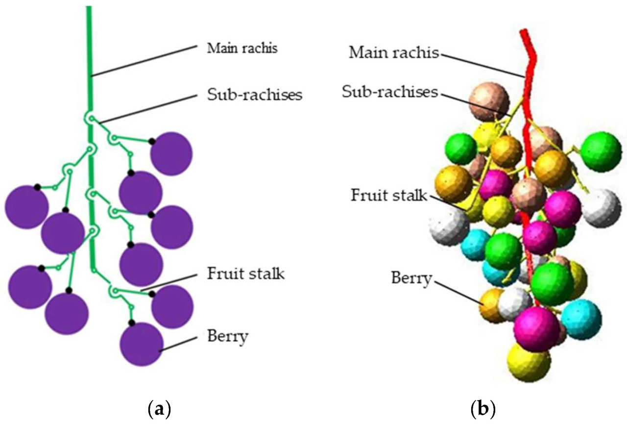 34. Huang, C.-Y.; Jheng, W.-T.; Tai, W.-K.; Chang, C.-C.; Way, D.-L. Procedural grape bunch modeling. Comput. Graph. 2013, 37, 225–237. [Google Scholar] [CrossRef]