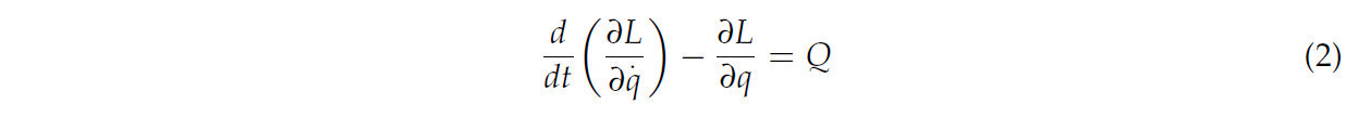 где q — обобщенные координаты, включая θ и φ, и 𝑄 — обобщенная внешняя сила.