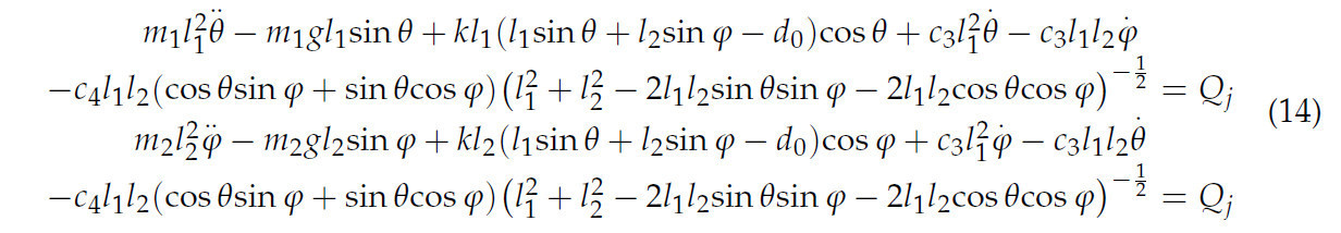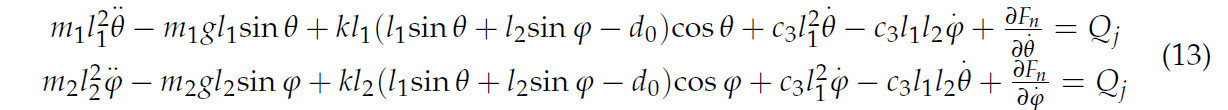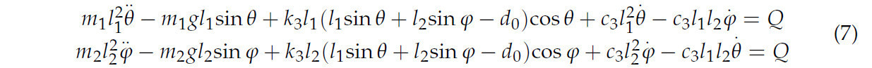 Учитывая упругость и демпфирование вязкоупругого действия плодоножек, уравнение Лагранжа может быть окончательно получено следующим образом: