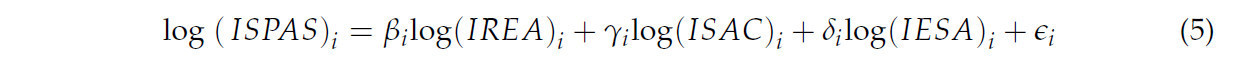ISPAS (Индекс устойчивых сельскохозяйственных показателей), который отражает баланс между экономической эффективностью и воздействием на окружающую среду (более высокие значения индекса отражают надежную экономическую эффективность сельского хозяйства с низким воздействием на окружающую среду). Компоненты: экономические счета для сельского хозяйства (EAA); валовая добавленная стоимость сельскохозяйственной отрасли (GVAA); и выбросы парниковых газов от сельского хозяйства (GGEA). Формула индекса представлена в Уравнении (1):