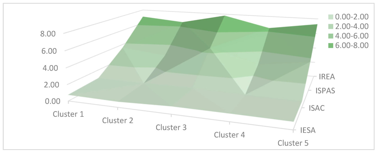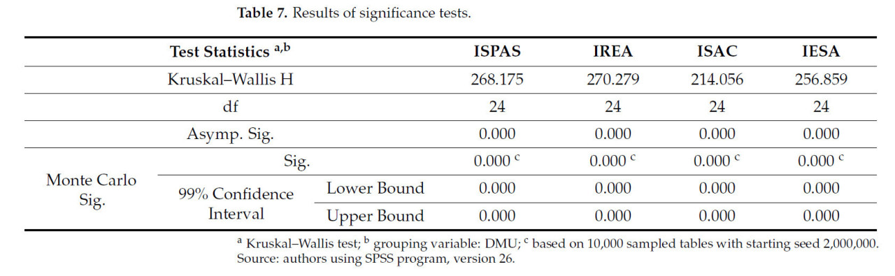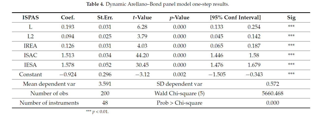 Таблица 2 представляет коэффициенты корреляции между переменными, используемыми в статистическом анализе: ISPAS, IREA, ISAC и IESA.