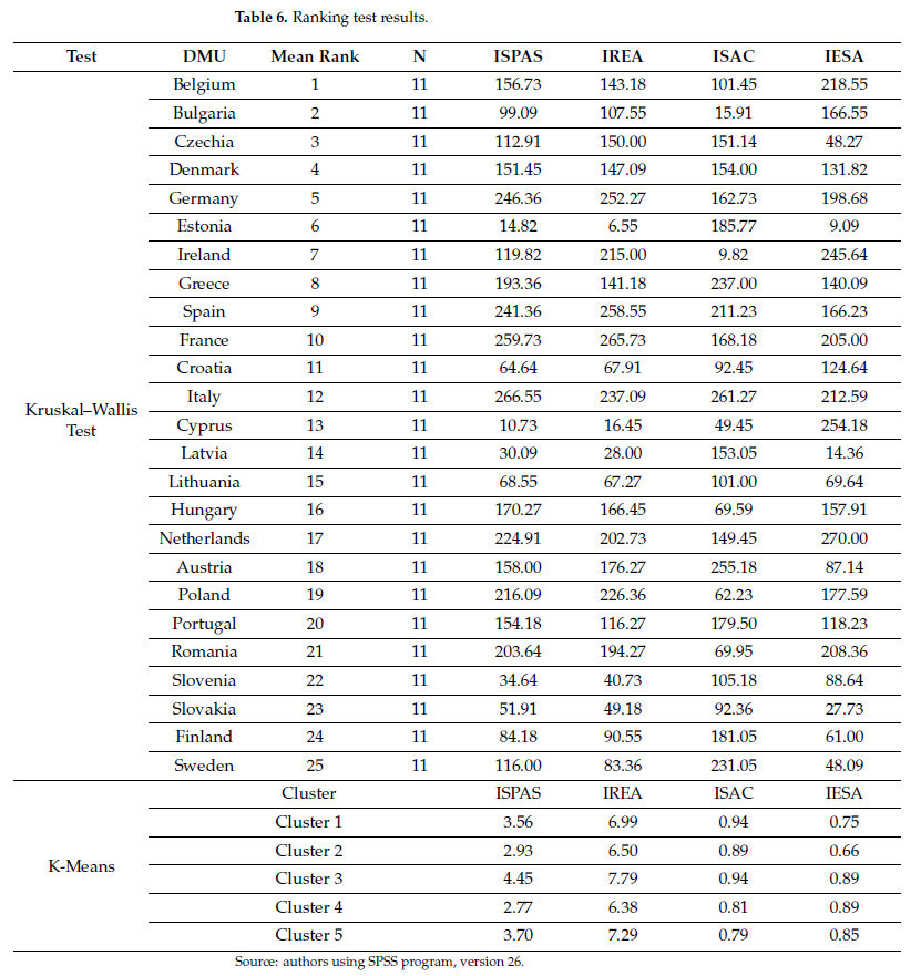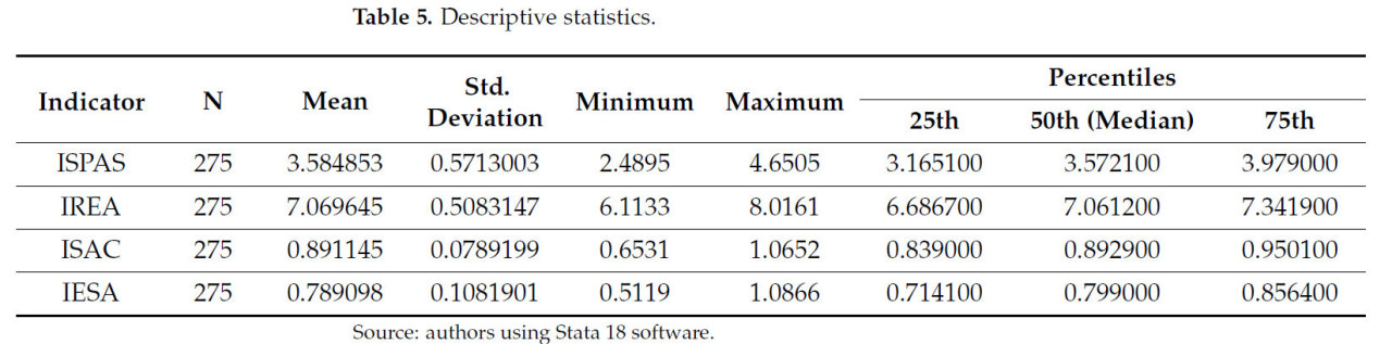 Интеграция синтетических индикаторов, таких как ISPAS, IREA, ISAC и IESA, дает значительное преимущество в этом процессе, поскольку позволяет количественно оценивать сложные взаимосвязи и облегчает интерпретацию результатов последовательным и политически релевантным образом. Таким образом, это исследование соответствует современной литературе и вносит оригинальный вклад, интегрируя динамичный и многомерный подход к оценке устойчивости европейского сельского хозяйства.