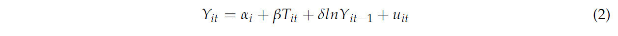 где результат и коэффициенты мероприятия такие же, как в уравнении (1), за исключением 𝛿, который является коэффициентом переменной результата, взятой для предыдущей урожайности в этом исследовании.