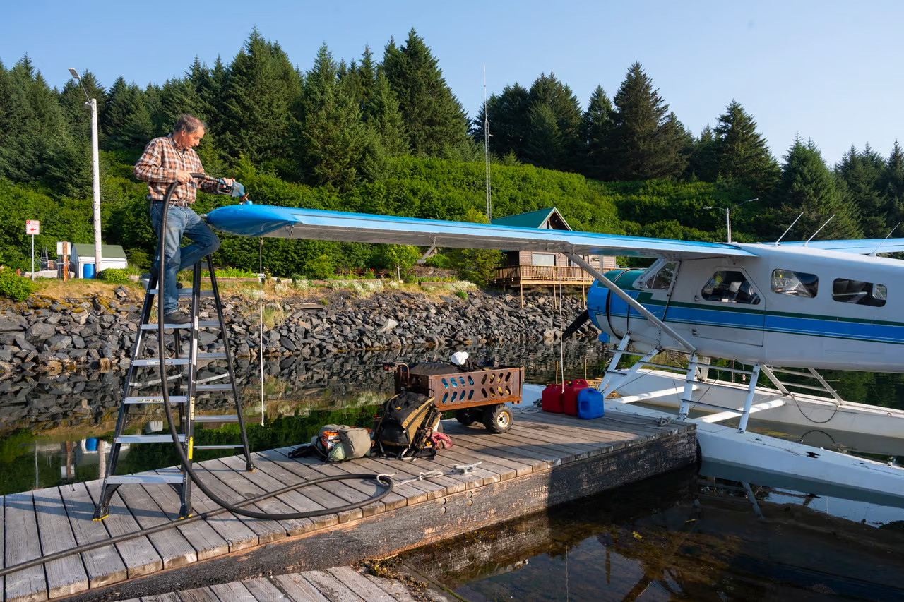 Руосс, переехавший из Сиэтла, штат Вашингтон, в 1979 году, будучи молодым пилотом, занимался поиском сельди. Сегодня он в основном перевозит охотников, наблюдателей за медведями и ученых, проводящих полевые исследования. Например, он возит охотников на коз на отдаленные скалистые вершины, изучая местность и считая до семи, пролетая над озером со скоростью 160 километров в час (100 миль в час), чтобы определить, достаточно ли длинная водная взлетно-посадочная полоса для самолета «Бивер».