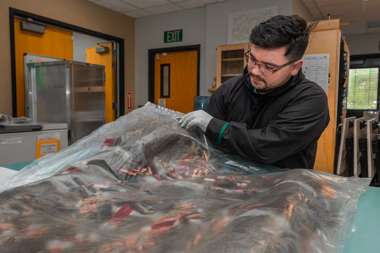 Канганаг на языке алутиик означает суслик. Для изготовления одной парки алутиикскому портному требовалось около 100 сусликов, что было ценнее, чем плащ из шкуры морской выдры. Некоторые свидетельства указывают на то, что алутиики завезли сусликов на остров Чирикова по меньшей мере 2000 лет назад, что, по-видимому, было более рациональным вложением, чем разведение крупного рогатого скота. Белок было легко перевозить, а рынок шкур был местным. Тем не менее, это были нарядные костюмы, — рассказал мне Дехрич Чья, менеджер по языку и живой культуре алутииков в Музее алутииков. Создание парки — от охоты до шитья и ношения — было данью уважения животным, которые отдали свои жизни алутиикам. Археолог Кэтрин Уэст и ее команда собрали более 20 000 костей белок из мусорных куч Чирикова, некоторые из которых имеют следы использования инструментов, а многие обгорели.