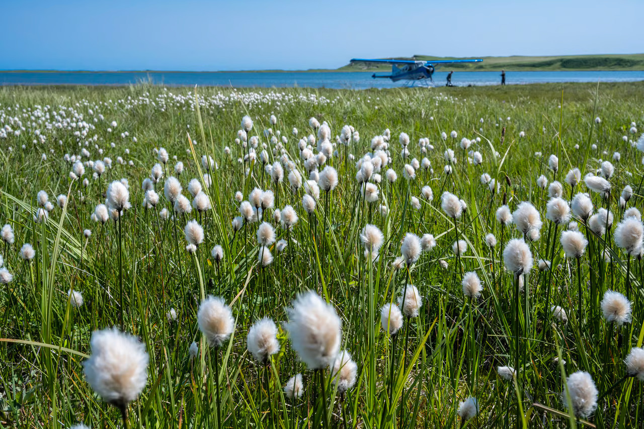Спеша обратно навстречу гидросамолету, мы облетаем местность, густо заросшую пушицей и окруженную небольшими холмами. В 2013 году орнитолог зарегистрировал шесть алеутских крачек и обнаружил одно гнездо с двумя яйцами. В Соединенных Штатах популяция алеутских крачек сократилась на 80 процентов за последние несколько десятилетий. Крачка, вероятно, является наиболее уязвимой морской птицей на Аляске. Но истребление лис, которые поедали птичьи яйца и птенцов, вероятно, помогло пернатым обитателям Чирикофа, особенно крачкам. Издалека мы насчитываем десятки птиц, взлетающих из травы, кружащихся в небе и порхающих обратно к своим гнездам.
