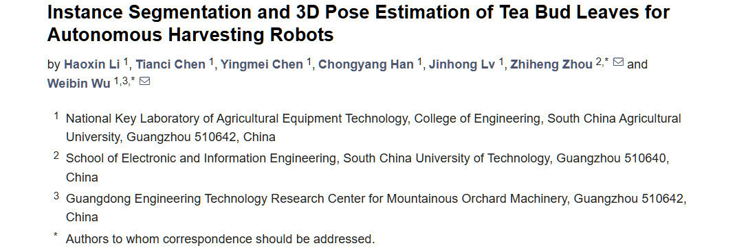 Li H, Chen T, Chen Y, Han C, Lv J, Zhou Z, Wu W. Instance Segmentation and 3D Pose Estimation of Tea Bud Leaves for Autonomous Harvesting Robots. Agriculture. 2025; 15(2):198. https://doi.org/10.3390/agriculture15020198
