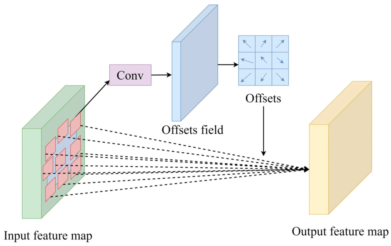 32. Zhu, X.; Hu, H.; Lin, S.; Dai, J. Deformable convnets v2: More deformable, better results. In Proceedings of the IEEE/CVF Conference on Computer Vision and Pattern Recognition, Long Beach, CA, USA, 15–20 June 2019; pp. 9308–9316. [Google Scholar]