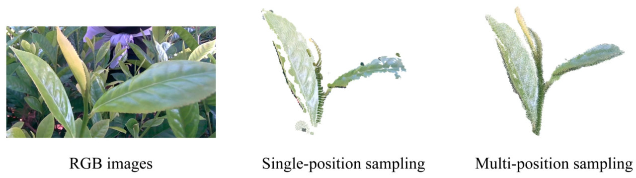 Наборы данных чайных почек были собраны в неструктурированной среде чайного сада. Однако из-за вариаций в наружном освещении, взаимной окклюзии чайных почек и различий в масштабе изображения, глубинные изображения часто подвержены шуму и содержат отсутствующую информацию о глубине. Эти факторы приводят к разреженности и неполноте облака точек чайных почек, что, в свою очередь, влияет на точность оценки позы. Качество облака точек чайных почек является ключевым фактором, влияющим на точность оценки позы, с чрезмерным шумом и потерей облака точек, являющимися основными источниками ошибок оценки.