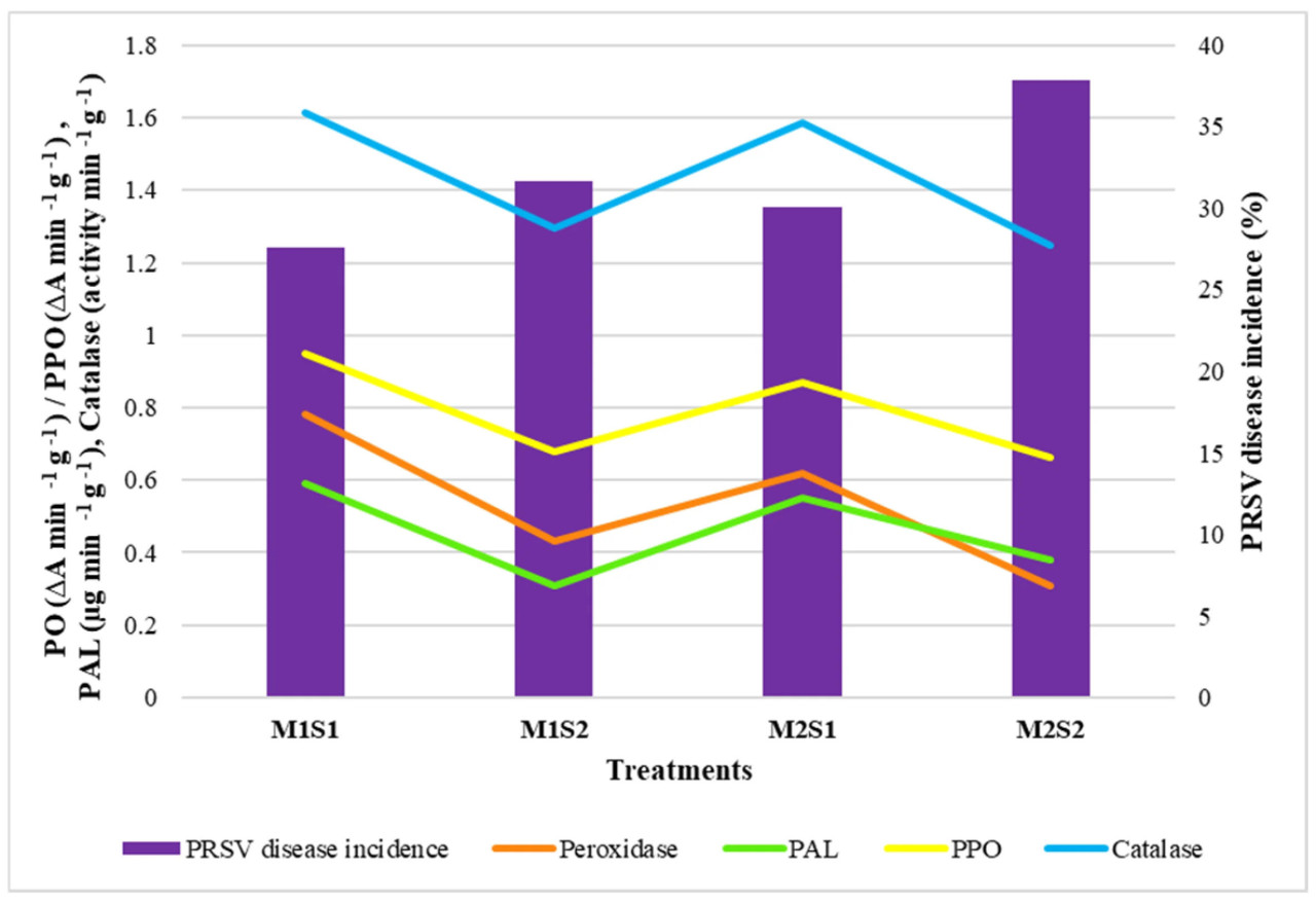 71. Deepika, S.; Manoranjitham, S.; Sendhilvel, V.; Karthikeyan, G.; Kavitha, C. Foliar nutrition enhances the host immunity against papaya ringspot virus. Pharma Innov. 2021, 10, 165–169. [Google Scholar]