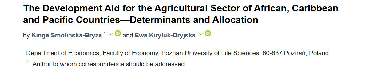 Smolińska-Bryza K, Kiryluk-Dryjska E. The Development Aid for the Agricultural Sector of African, Caribbean and Pacific Countries—Determinants and Allocation. Agriculture. 2025; 15(2):190. https://doi.org/10.3390/agriculture15020190