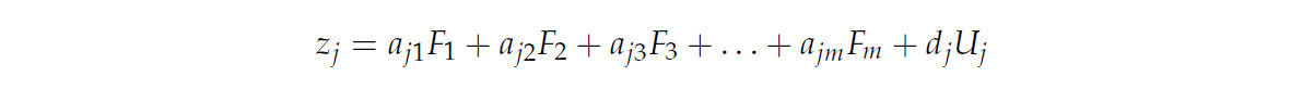 • aj1, …, ajm — нагрузки общих факторов;