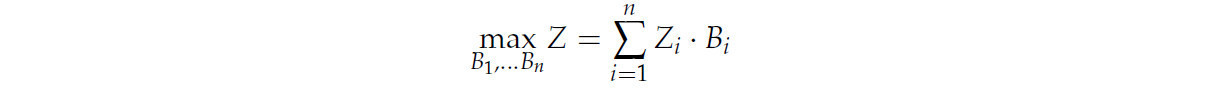 Сущность линейного программирования, следовательно, заключается в построении относительно простых моделей принятия решений, которые могут быть поняты лицами, принимающими решения, и помочь им в принятии политических решений. Эти модели строятся для того, чтобы дать возможность анализировать последствия различных вариантов решений, взаимозависимости между решениями и реакцию системы на изменения и, таким образом, получить рекомендации по принятию решений, позволяющие лучше понять природу проблемы и последствия принятия определенных решений [57,58,59,60,61]. В предлагаемой конструкции, следуя [20,39], линейная целевая функция может быть определена следующим образом:
