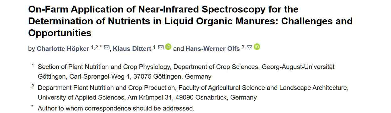Höpker C, Dittert K, Olfs H-W. On-Farm Application of Near-Infrared Spectroscopy for the Determination of Nutrients in Liquid Organic Manures: Challenges and Opportunities. Agriculture. 2025; 15(2):185. https://doi.org/10.3390/agriculture15020185