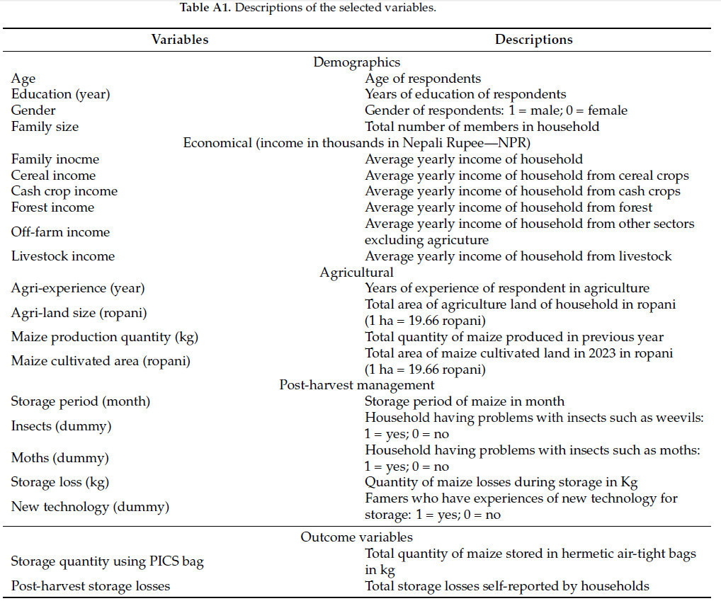 25. Paneru, R.B.; Paudel, G.P.; Thapa, R.B. Determinants of post-harvest maize losses by pests in mid hills of Nepal. Int. J. Agric. Environ. Biores. 2018, 3, 110–118. [Google Scholar]
