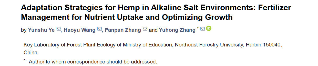 Перевод статьи «Adaptation Strategies for Hemp in Alkaline Salt Environments: Fertilizer Management for Nutrient Uptake and Optimizing Growth» авторов Ye Y, Wang H, Zhang P, Zhang Y., оригинал доступен по ссылке. Лицензия: CC BY. Изменения: переведено на русский язык