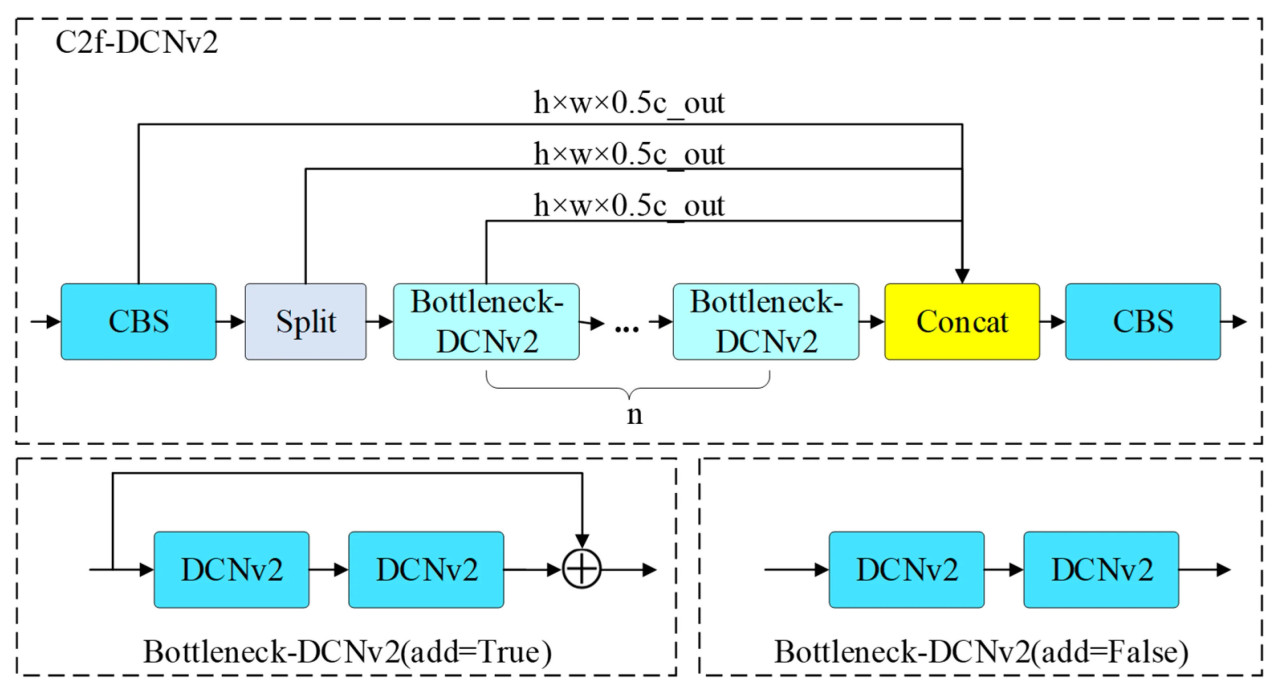 Рисунок 10. Структура улучшенного модуля C2f-DCNv2.