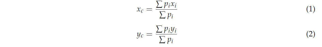 где 𝑥𝑐 и 𝑦𝑐 представляют координаты ширины и высоты центроида, 𝑥𝑖 и 𝑦𝑖 представляют координаты ширины и высоты каждого элемента в матрице маски, а 𝑝𝑖 представляет вероятность того, что позиция элемента принадлежит зоне срыва.