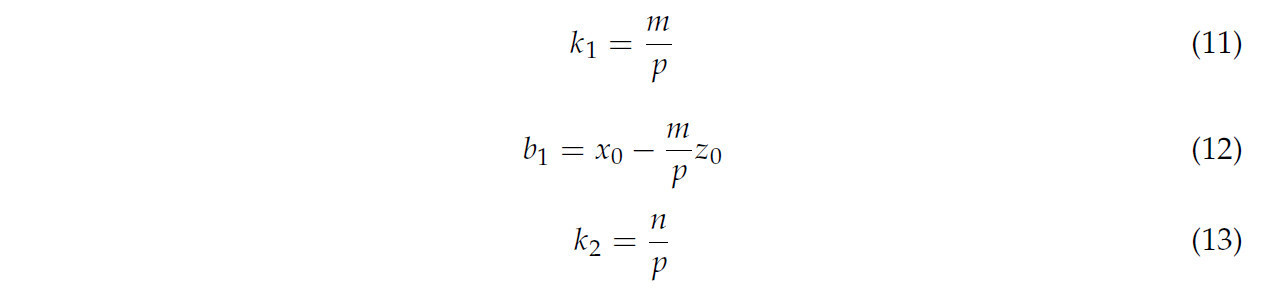 Из уравнений (17)–(20) аппроксимированное значение k1, b1, k2 и b2 может быть рассчитано, как в уравнениях (21)–(24).