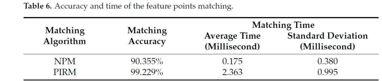 Точность и влияние сопоставления характерных точек на эффективность сбора были основными факторами, рассматриваемыми при оценке сопоставления характерных точек. Поэтому точность сопоставления и время сопоставления были предложены в качестве метрик оценки, которые были все получены с использованием статистического анализа данных тестирования сопоставления.