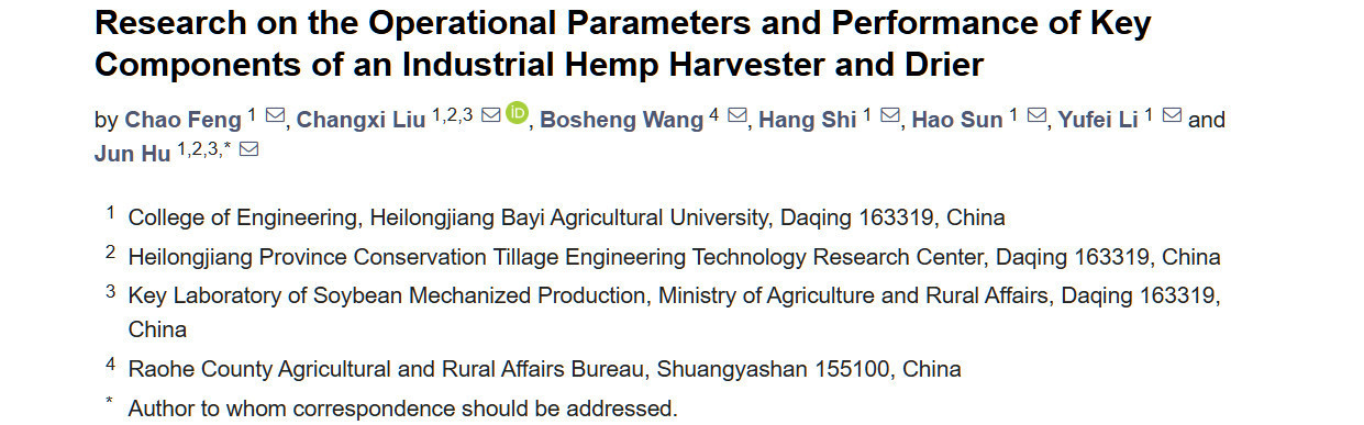 Feng C, Liu C, Wang B, Shi H, Sun H, Li Y, Hu J. Research on the Operational Parameters and Performance of Key Components of an Industrial Hemp Harvester and Drier. Agriculture. 2025; 15(2):141. https://doi.org/10.3390/agriculture15020141