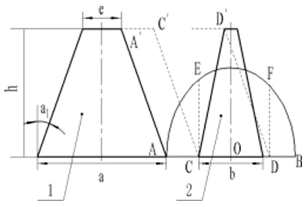 β оказывает значительное влияние на качество среза, поэтому определение взаимосвязи между Vp и Vm путем задания β имеет ключевое значение. Как правило, строится диаграмма среза для получения траектории движения подвижного лезвия, анализа характера движения режущего аппарата и определения значения β. Согласно Справочнику по проектированию сельскохозяйственной техники [26], разумный диапазон для β обычно составляет от 0,8 до 1,2. Однако из-за высокой плотности посадки промышленной конопли для волокна диапазон значений β устанавливается между 1 и 1,2. На Рисунке 4 показан профиль среза, когда β установлен на 1.