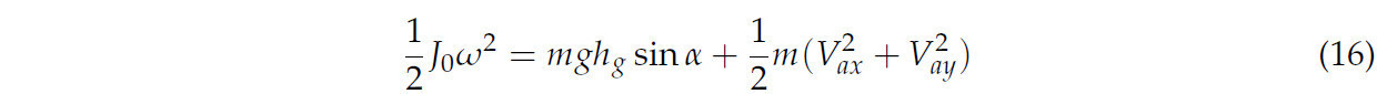 В уравнении, J₀ представляет момент инерции растения (кг × м²), ω представляет угловую скорость растения во время вращения вокруг фиксированной оси (рад/с), m представляет массу растения (кг), h_g представляет высоту центра масс растения (м), а α — угол укладки растения (°).