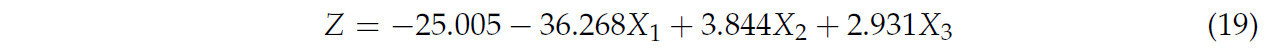 В уравнении, Z представляет силу среза стеблей волокнистой конопли (Н), X1 представляет скорость среза (см/с), X2 представляет диаметр стебля (мм), а X3 — влажность стебля (%).