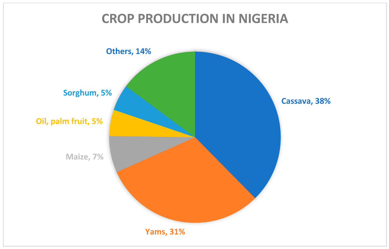 Рисунок 1. Расчетное производство сельскохозяйственных культур в Нигерии. Адаптировано из Senkus et al. [13].