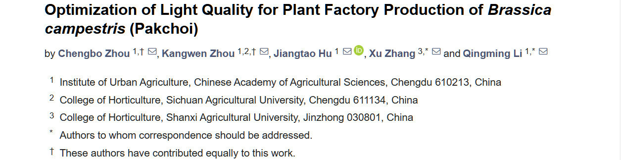 Zhou C, Zhou K, Hu J, Zhang X, Li Q. Optimization of Light Quality for Plant Factory Production of Brassica campestris (Pakchoi). Agriculture. 2025; 15(3):347. https://doi.org/10.3390/agriculture15030347