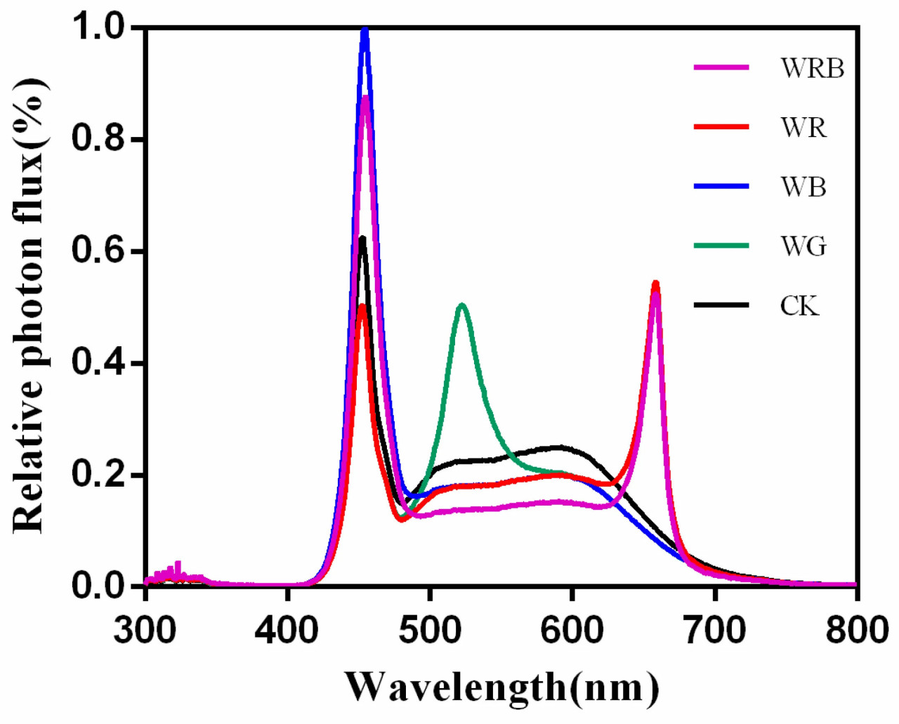 Свет является ключевым фактором, влияющим на рост и качество сельскохозяйственных культур в условиях закрытого грунта (plant factories). Для определения оптимального светового спектра для производства пак-чоя, сорт 'Югуань №3' выращивали под пятью вариантами освещения на основе светодиодов (LED): белый свет (W; контроль, CK); белый/красный = 4:1 (WR); белый/синий = 4:1 (WB); белый/красный/синий = 3:1:1 (WRB); и белый/зеленый = 4:1 (WG). Интенсивность света во всех вариантах составляла 250 ± 10 мкмоль·м⁻²·с⁻¹.