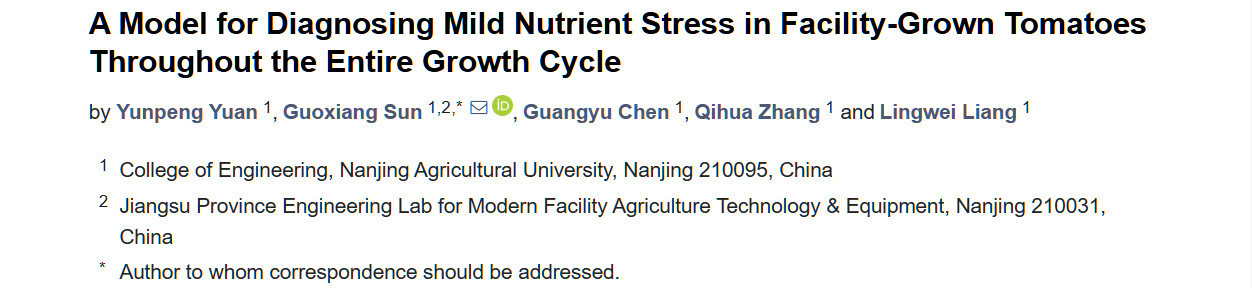 Перевод статьи «A Model for Diagnosing Mild Nutrient Stress in Facility-Grown Tomatoes Throughout the Entire Growth Cycle» авторов Yuan Y, Sun G, Chen G, Zhang Q, Liang L., оригинал доступен по ссылке. Лицензия: CC BY. Изменения: переведено на русский язык