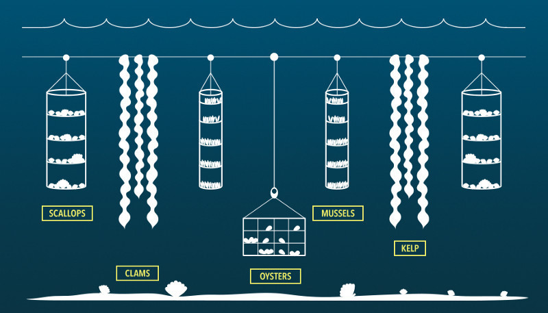 Подводные фермы Смита делают прямо противоположное. Морские водоросли очищают воду от азота и фосфора, помогая защитить океанские экосистемы. Морские водоросли также предотвращают закисление океана , вызванное проникновением углеродного загрязнения в океан и повышением кислотности воды. Морские водоросли поглощают углерод, сохраняя окружающие воды безопасными для моллюсков и других уязвимых существ. По этой причине фермы Смита служат убежищем для крабов, креветок и других морских видов.