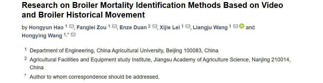 Hao H, Zou F, Duan E, Lei X, Wang L, Wang H. Research on Broiler Mortality Identification Methods Based on Video and Broiler Historical Movement. Agriculture. 2025; 15(3):225. https://doi.org/10.3390/agriculture15030225