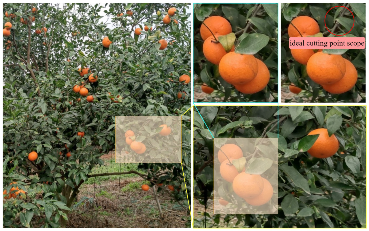 Сбор плодов является важнейшей процедурой в плодоовощной промышленности. В связи с быстрым ростом мировой индустрии цитрусовых, проблемы с рабочей силой становятся все более острыми для большинства стран-производителей цитрусовых [1,2]. Например, цитрусовая промышленность Белиза сталкивается с критической нехваткой рабочей силы из-за высоких затрат и строгих требований к трудовым мигрантам, что приводит к значительному сокращению объема собранных цитрусовых и потенциальным экономическим потерям до 15 миллионов долларов [3]. В США Министерство сельского хозяйства пытается внедрить программу по решению проблемы нехватки рабочей силы в цитрусовой отрасли путем предоставления стимулов [4]. В Китае производство цитрусовых выросло на 7%, достигнув более 64 миллионов метрических тонн, и эта тенденция продолжит расти [5]. Таким образом, существует насущная необходимость повышения производительности в цитрусовой промышленности. В большинстве регионов сбор цитрусовых по-прежнему преимущественно осуществляется вручную. Из-за сезонности, высокой урожайности и короткого периода сбора урожая ручной труд не справляется с нагрузкой [6]. Автоматизированная уборка урожая является одним из ключевых направлений модернизации сельского хозяйства; автоматический сбор плодов стал заметным направлением исследований, демонстрируя потенциал для решения проблемы нехватки рабочей силы [7].