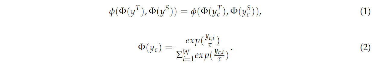 В Уравнении (1) T и S обозначают сеть-учителя и сеть-студента соответственно. и обозначают активации этих двух сетей соответственно. Φ(·) — это функция преобразования, которая отвечает за преобразование значений активации сети в вероятностное распределение. В Уравнении (2) c=1,2,3… обозначает канал, i обозначает индекс каждого канала, τ — это гиперпараметр температуры, а — выходные данные каждого канала в сети-студенте. ϕ(·) — это функция рассеяния KL, которая используется для измерения разницы между распределениями каналов двух сетей.