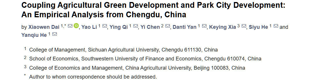 Перевод статьи «Coupling Agricultural Green Development and Park City Development: An Empirical Analysis from Chengdu, China» авторов Dai X, Li Y, Qi Y, Chen Y, Yan D, Xia K, He S, He Y., оригинал доступен по ссылке. Лицензия: CC BY. Изменения: переведено на русский язык