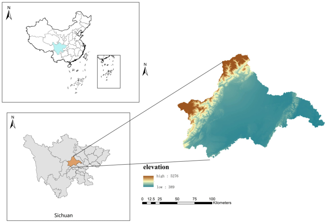 Провинция Сычуань, расположенная на юго-западе Китая, является важной сельскохозяйственной провинцией Китая. Благодаря своим богатым сельскохозяйственным ресурсам и практике зеленого развития, Сычуань играет важную роль в зеленом развитии сельского хозяйства. Известный как «Земля изобилия», Чэнду (в данном исследовании Чэнду относится к Чэндуской равнине и прилегающим районам, включая 5 центральных городских округов и 15 окрестных уездов и городов) расположен в центральной части провинции Сычуань, Западный Китай. Он известен как «Небесная земля» благодаря своим богатым региональным ресурсам. Географическое положение Чэнду можно увидеть на Рисунке 1. Это не только экономический центр Юго-Западного Китая, но и пионер и демонстрационная зона строительства паркового города. На конец 2022 года общая численность населения Чэнду составляла 21,268 миллиона человек, уровень урбанизации — 79,9%, а ВВП — 20,8175 триллиона юаней (Данные: Бюро статистики Чэнду, https://cdstats.chengdu.gov.cn/cdstjj/c154795/2023-03/25/content_c2016a5d71b24884835ddb8ea0bfbe1a.shtml (доступ осуществлен 25 марта 2023 года)). В 2007 году Чэнду создал Пилотную зону всесторонней реформы городского и сельского развития, установив ориентацию развития на всемирно-современный идиллический город, что заложило хорошую основу для строительства паркового города на более позднем этапе.