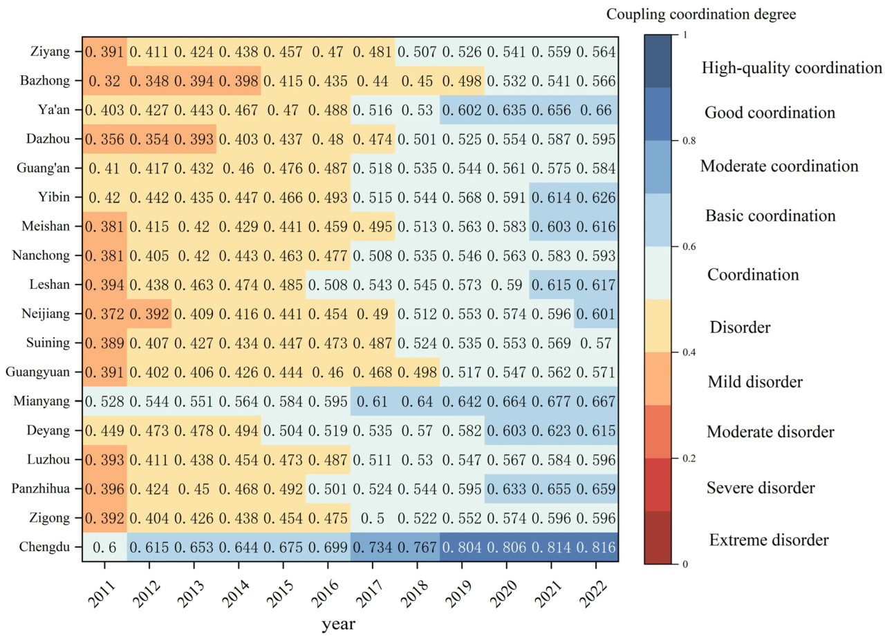 52. Gan, L.; Shi, H.; Hu, Y.; Lev, B.; Lan, H. Coupling coordination degree for urbanization city-industry integration level: Sichuan case. Sustain. Cities Soc. 2020, 58, 102136. [Google Scholar] [CrossRef]