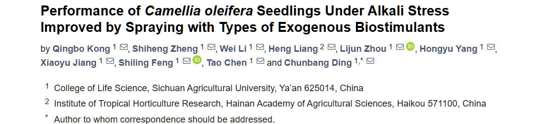 Kong Q, Zheng S, Li W, Liang H, Zhou L, Yang H, Jiang X, Feng S, Chen T, Ding C. Performance of Camellia oleifera Seedlings Under Alkali Stress Improved by Spraying with Types of Exogenous Biostimulants. Agriculture. 2025; 15(3):274. https://doi.org/10.3390/agriculture15030274