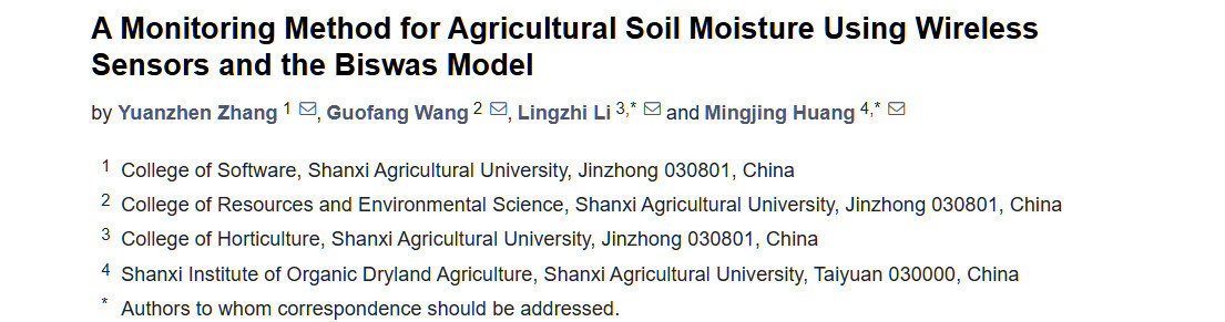 Перевод статьи «A Monitoring Method for Agricultural Soil Moisture Using Wireless Sensors and the Biswas Model» авторов Zhang Y, Wang G, Li L, Huang M., оригинал доступен по ссылке. Лицензия: CC BY. Изменения: переведено на русский язык