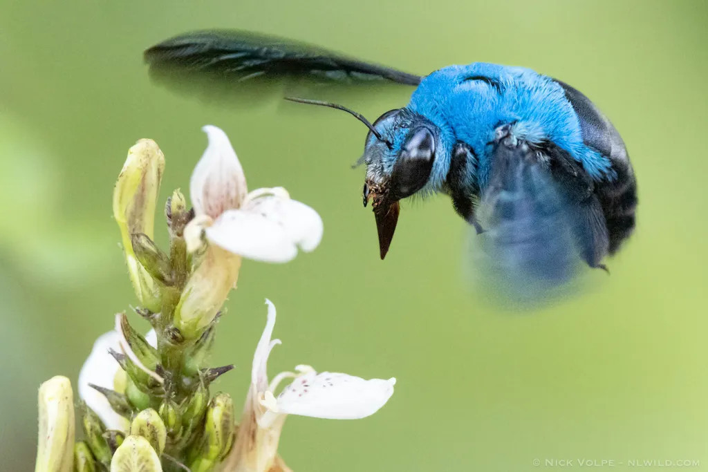 Несмотря на то, что они выглядят как иллюстрация из книги доктора Сьюза, синие пчелы-плотники (Xylocopa caerulea) обитают в Юго-Восточной Азии, Индии и Южном Китае. Они достигают почти одного дюйма в длину, что делает их особенно крупными, но они не особенно агрессивны. В отличие от других пчел, они предпочитают жить в одиночку, а не в больших ульях.
