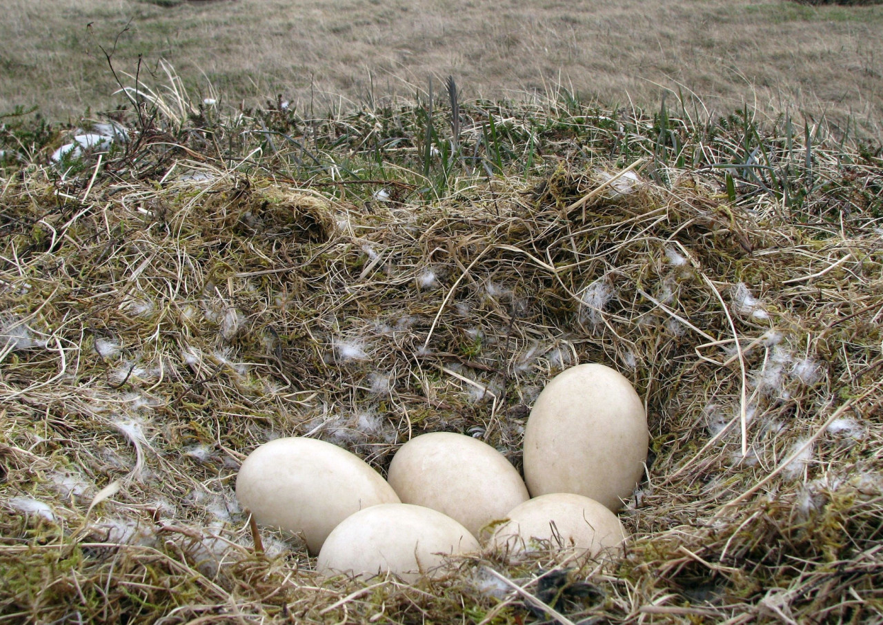 Яйца малого тундрового лебедя (Cygnus columbianus columbianus) лежат в относительно открытом гнезде в Национальном заповеднике дикой природы Юкон-Дельта на Аляске. Они размножаются в отдалённых районах арктической части Северной Америки и должны защищать свои яйца и птенцов от многочисленных хищников, включая лисиц, ласок, волков, медведей, а также других птиц.