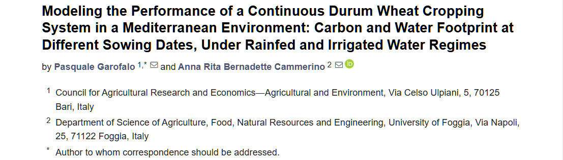 Перевод статьи «Modeling the Performance of a Continuous Durum Wheat Cropping System in a Mediterranean Environment: Carbon and Water Footprint at Different Sowing Dates, Under Rainfed and Irrigated Water Regimes» авторов Garofalo P, Cammerino ARB., оригинал доступен по ссылке. Лицензия: CC BY. Изменения: переведено на русский язык