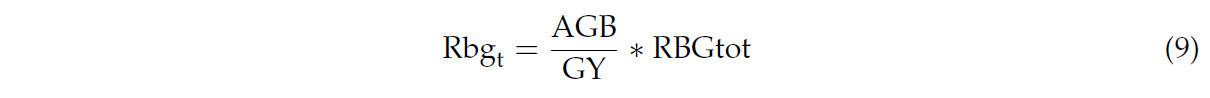где RBG_tot — отношение подземных остатков к надземной биомассе (0,24).