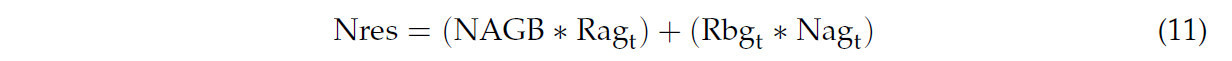 где N_AGB и N_аг_t — содержание азота в надземных остатках и содержание азота в подземных остатках (кг кг⁻¹) соответственно.