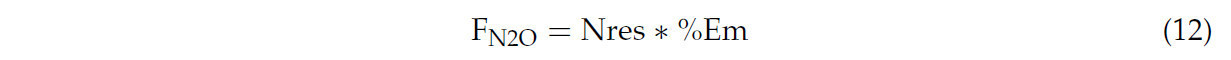 Наконец, выбросы N₂O (F_N₂O; кг га⁻¹), являющиеся результатом разложения растительных остатков, рассчитываются следующим образом: