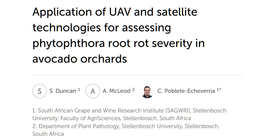 Duncan S, McLeod A and Poblete-Echeverria C (2024) Application of UAV and satellite technologies for assessing phytophthora root rot severity in avocado orchards. Front. Agron. 6:1419479. doi: 10.3389/fagro.2024.1419479